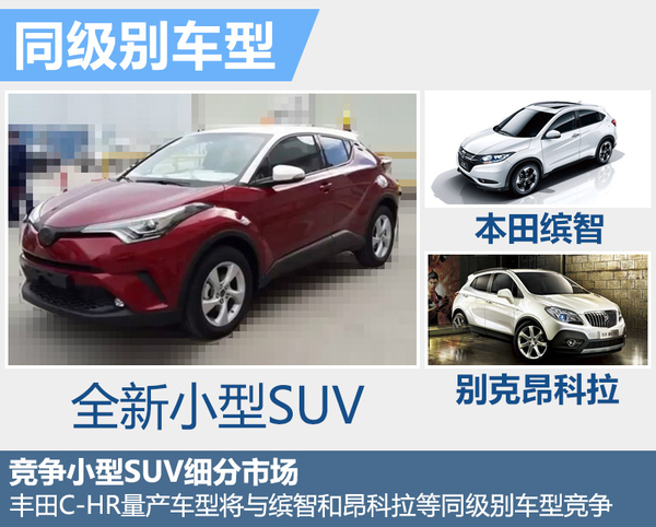 从数据上来看,本田缤智2015年全年累计销量126,838辆,别克昂科拉销量为82,013辆,这两款车在小型SUV领域销量表现十分出色。根据汽车工业协会公布的消息,1-4月份乘用车产销分别相比去年同期增长6.6%和6.7%,增幅比前三月分别回落0.7%和0.1%。其中SUV产销持续高速增长,分别为46.8%和46.3%。目前国内小型SUV市场竞争激烈,丰田小型SUV C-HR上市后,将会与本田缤智和别克昂科拉等同级别车型展开竞争。