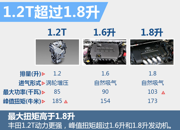 丰田全新的1.2T涡轮增压发动机也已正式发布,并将于年内搭载在国内现售车型上。此外,新发动机拥有丰田的可变气门正时技术,使得发动机在特定的负载状态下可进行阿特金森循环,丰田表示1.2T发动机将会是当今最炙手可热的高效发动机之一。根据此前公布的数据,1.2T涡轮增压发动机最大功率85千瓦,最大扭矩185牛米,动力输出与丰田1.6升自然吸气发动机相当,峰值扭矩超过1.8升自然吸气发动机。