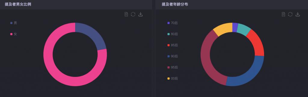 而检索话题提及人群发现,主要以 95 后女性为主,这也侧面反映了使用小红书的人群画像情况。