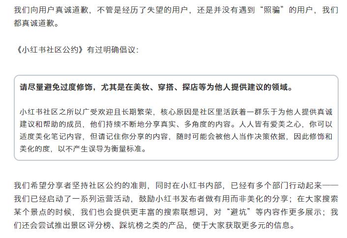 文中提到了小红书内部已经启动一系列运营活动,鼓励小红书发布者做有用而非美化的分享,并尝试推出景区评分榜、踩坑榜之类的产品。