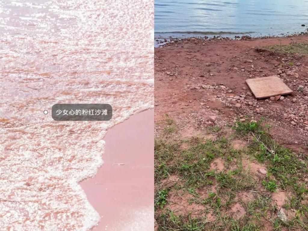 这张粉红沙滩激起了多少人的少女心,更是吸引了不少慕名而来打卡的游客们。But 看右边,到了现场才发现沙滩是一堆土褐色的粗糙沙土,并且杂草丛生,跟攻略看到的图片天差地别,原来只是靠后期修图," 照骗 " 实锤了。