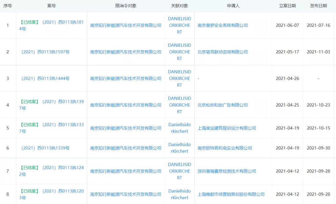 由于没有及时支付赔付费用,从去年9月截至现在,南京知行新能源也已经有21次被相关法院列为失信被执行人,与此同时其也有23次被相关法院限制消费令的记录。