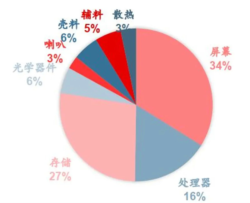处理器、存储、光学显示器件在VR终端成本中占比较高,产业链相对比较成熟。由于目前VR产品的使用场景主要是游戏和视频,以图像处理和显示为功能重点,因此在硬件成本中,负责计算、渲染和图像处理的CPU和GPU占比较高,占比16%左右;另外VR也需要较高的内存,存储成本占比27%;包括屏幕和光学器件在内的显示器件占比约为40%。