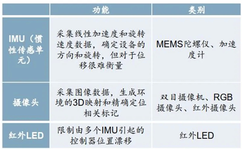 核心辅助设备为控制器。分双手抓握,通过运动完成与头戴设备呈现内容的交互。而随着手势追踪功能的推出,用户不需控制器、仅凭双手即可完成相关操作。