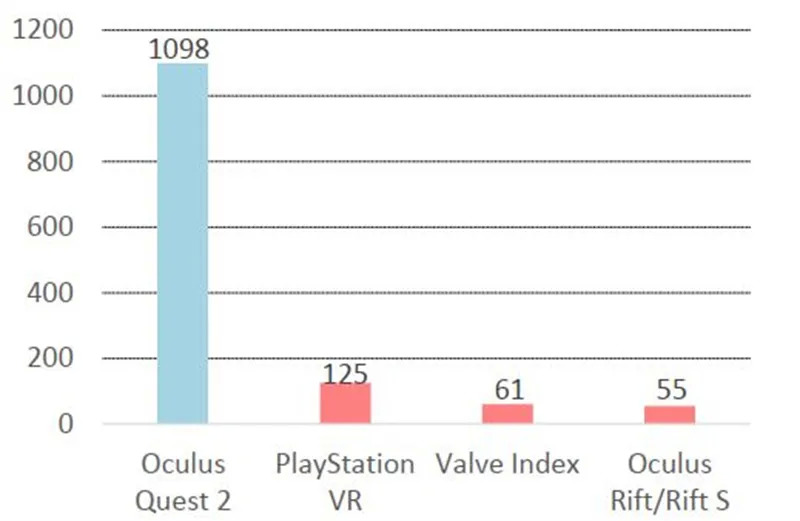 硬件端放弃PC VR硬件设备,全力投入VR一体机研发。Oculus的VR产品主要分为两类,一体机和头显,一体机拥有独立处理器,自成生态。而头显一般需要接入PC、主机等外部设备。Oculus2012年开始推出的Rift系列(Oculus Rift DK1、Rift CV1、Rift S),主要为头显。而后Oculus的研发转向独立生态的一体机方向,2019年Oculus Quest推出,2020年9月Oculus Quest 2推出,当季销量突破100万,超过历代产品销量总和。