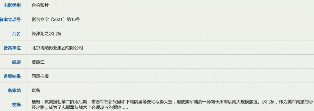 这一次的备案公示中,只有一部是中外合拍电影,那便是《长津湖之水门桥》,不清楚此番博纳为何将属性选择为合拍片,总之这些已经不再重要,因为《长津湖之水门桥》终于要来了。除了电影类别有变之外,影片的编剧也从兰晓龙变成了贾燕江。