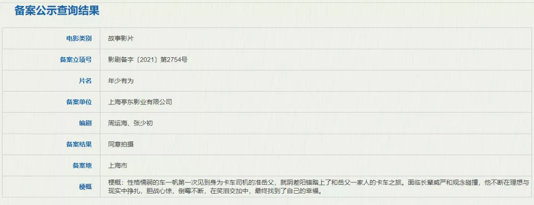 从影片的备案梗概来看,《年少有为》延续了韩寒的特有风格,这种小人物、小幽默的质感,可谓深得三四线观众的心。亭东的项目数量不多,并没有急于扩张,因此项目具备立项的实力,肯定也是看好这个项目的品质。接下来也会时刻关注该项目后续的进展。