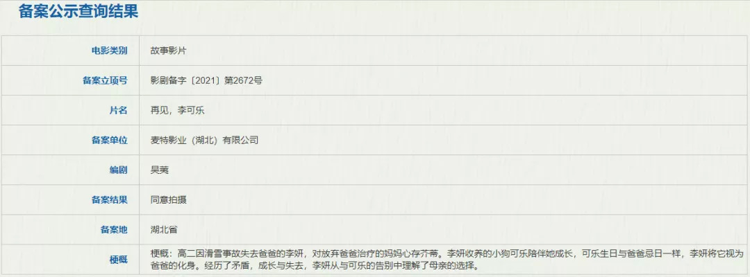 从备案梗概可以看出,《再见,李可乐》关于亲情和成长,跟口碑电影《狗十三》颇为相似,但显然前作会以商业片的结构去完成。近年来,关于这些现实题材的影片越来越多,显然这是一个非常积极的现象,不仅能够控制成本,而且具备博黑马的能量。