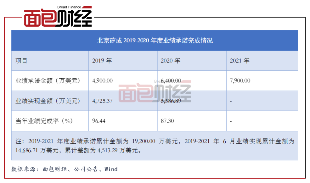 图2:2019年至2020年北京矽成业绩承诺完成情况