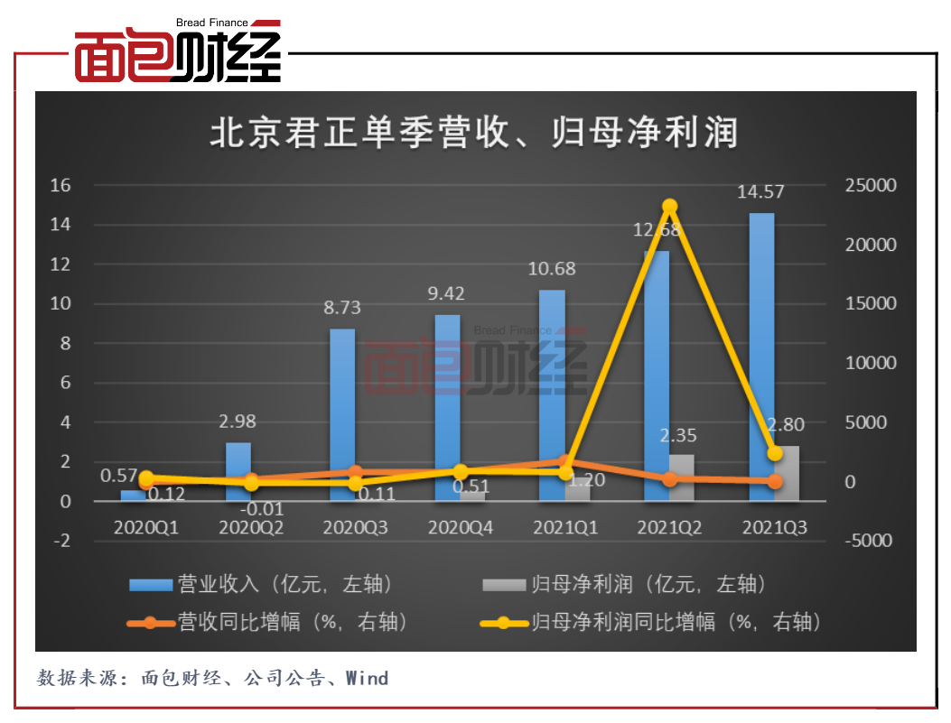 图3:2020至2021Q3北京君正单季营收、归母净利润