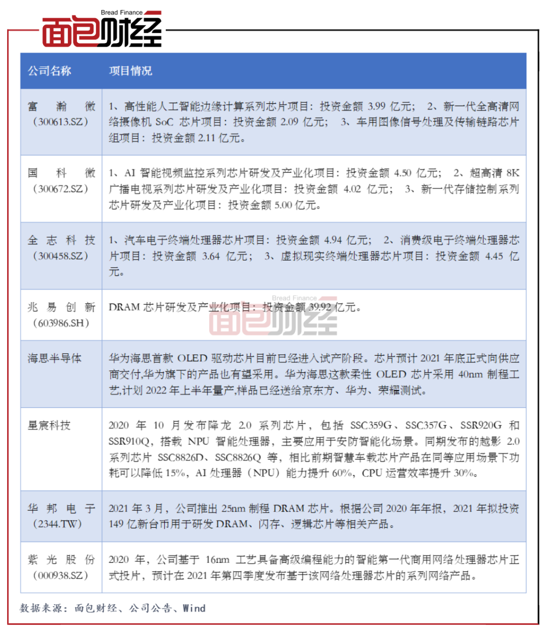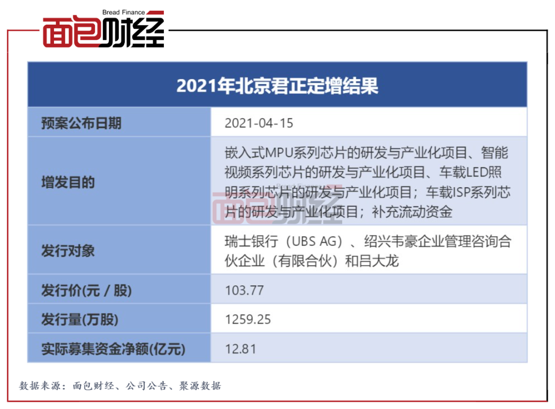 2020年至2021年,北京君正通过两次定增募资,分别筹得资金15亿元和13.07亿元,公司将同时建设多个产品线项目。