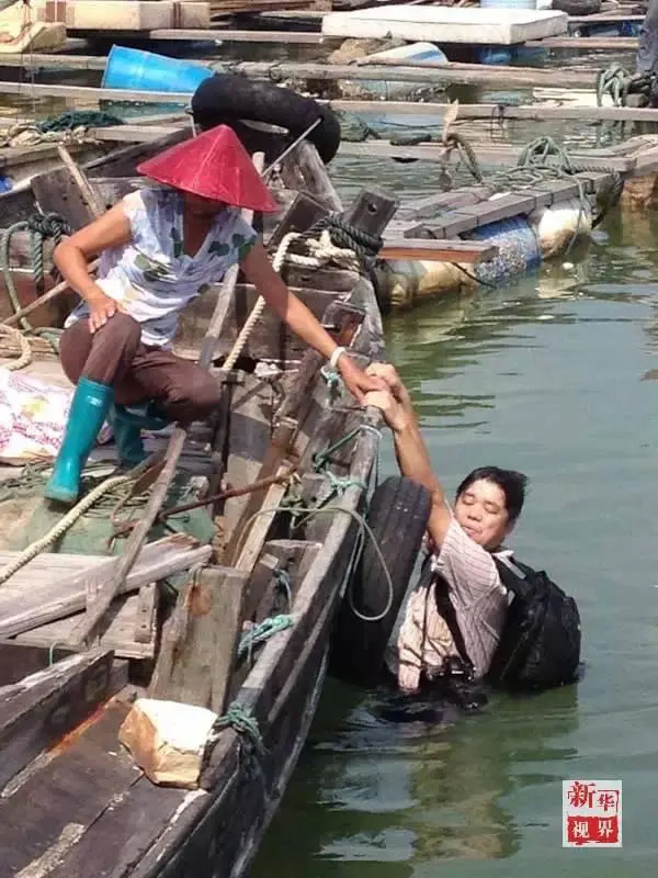 新华社记者陆波岸在拍摄渔民时不慎落水。
