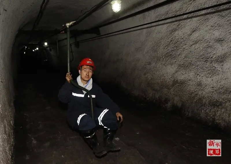 新华社记者燕雁深入200多米深的采煤作业面采访。