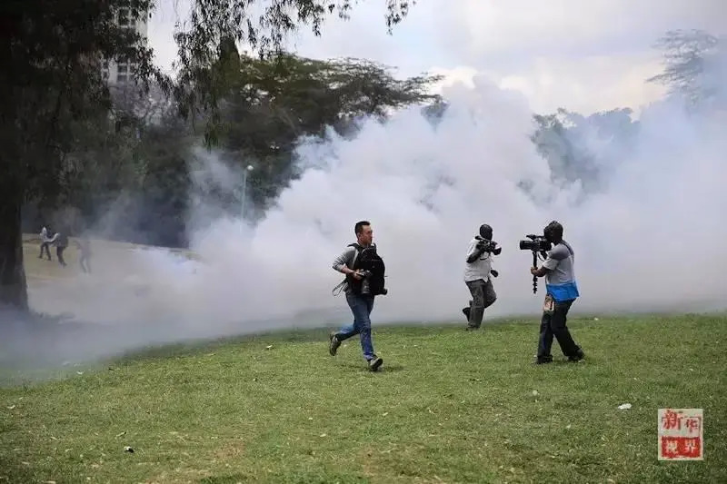 新华社记者孙瑞博在内罗毕采访时躲避催泪瓦斯。