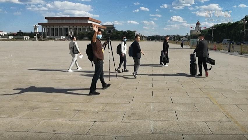 新华社记者才扬在天安门广场拍摄。