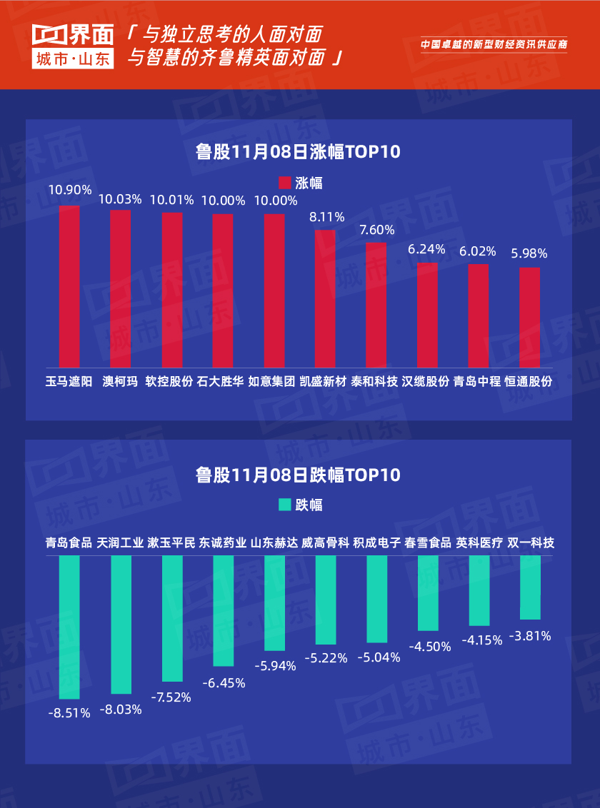 11月8日,山东151股上涨,101股下跌,4股持平。