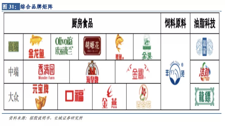 金龙鱼拥有多层次的品牌矩阵,旗下调和油、橄榄油等价格相差较大,产品定位具有明显的层次性,高中低端均有覆盖。其中,“金龙鱼”、“欧丽薇兰”、“胡姬花”等多个品牌都已成为其相应品类的代表品牌之一。