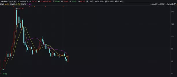 上市之初,金龙鱼不负厚望,股价一路冲高至145.51元/股,短短几个月翻了3倍多。而随着2021年的到来,金龙鱼与A股的蜜月期结束,今年以来股价跌幅超过50%,市场开始露出其残酷的一面。