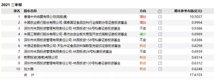 当然,更广为人知的是,“民间股神”林园在金龙鱼股价回调的三季度,选择继续加仓,似乎对金龙鱼尤其情有独钟。