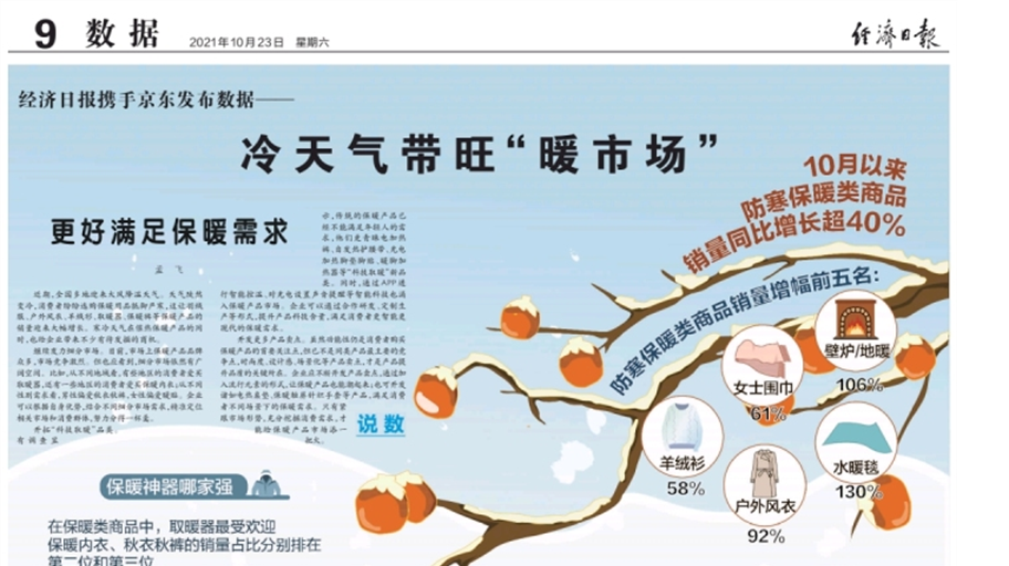 在上个月,消费市场的保暖大计就轰轰烈烈地拉开帷幕,10月份,经济日报统计数据显示,十月以来,保暖类商品同比增长超过40%,保暖内衣的销量占比超过20.86%,销量增幅排名前五的是围巾、羊毛衫、风衣、水暖毯以及壁炉,羽绒服的身影荡然无存。
