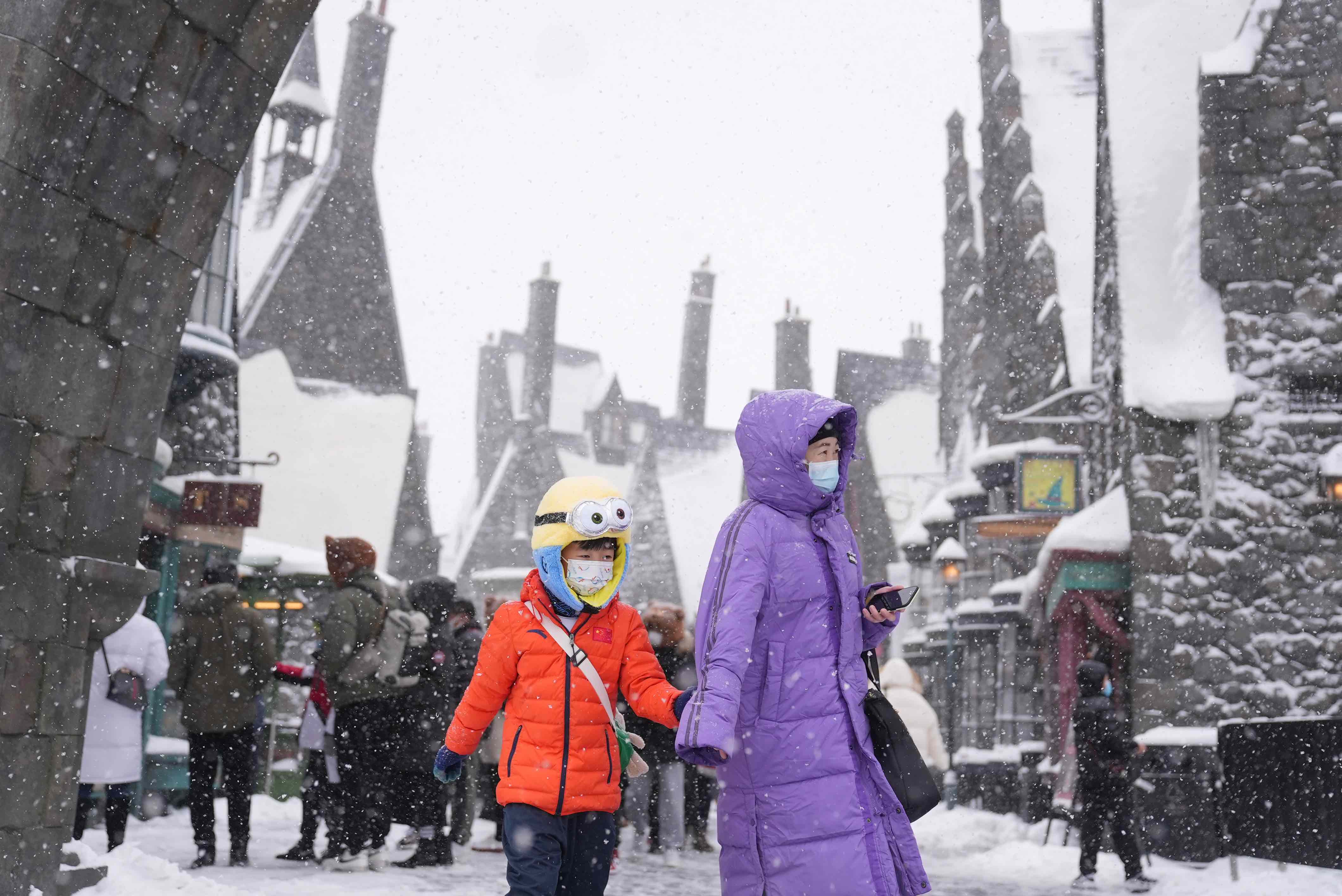 上周末北京下了第一场雪。在环球影城哈利波特主题园区里,游客们穿戴着巫师袍、手持魔杖的照片又在网上火了一把。