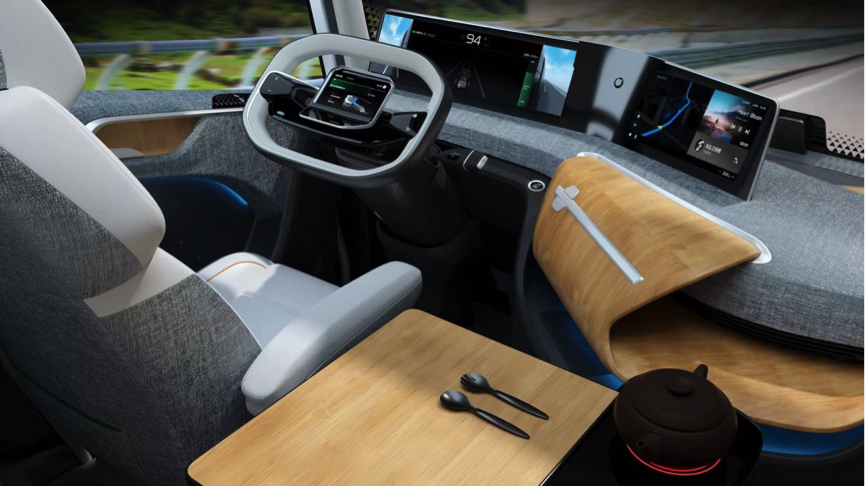 与以往重卡外形呆板、内饰简陋的刻板印象不同,远程星瀚H的外形时尚。内部的整个座舱设计围绕司机的核心痛点,应用家的理念,合理优化驾驶区和生活区,设计了包括淋浴房、洗手间、超级单人床、冰箱、煮茶器等,让座舱空间得以充分利用。在车门下方还外置了厨房和洗烘一体洗衣机,将家的烟火气搬到车上。