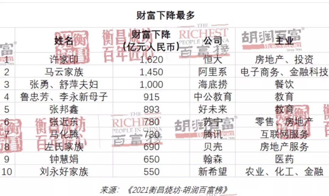 前不久,胡润研究院在成都发布了2021年《胡润百富榜》。