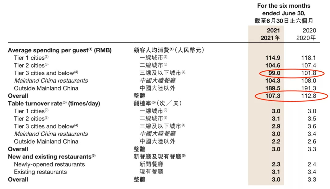 一个不算好的消息是,今年上半年,海底捞的顾客人均消费已经降到107.3元 ,这是不是就与三线城市门店数量增加有关,让人联想。