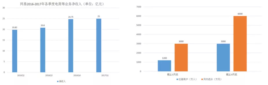 图:网易首年各季度电商等业务净收入和2016年严选用户和月流水(来源:联商网)