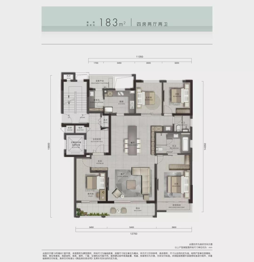 在这样的维度之下,建筑面积约183㎡户型成为所有“高品位”人群的理想之选。
