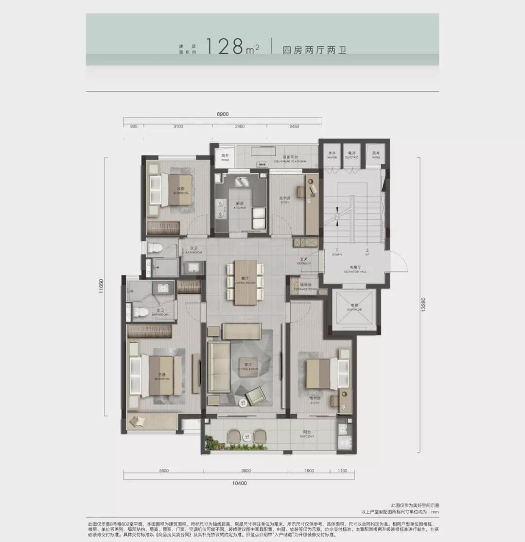 建筑面积约128㎡定制居所设计了四房两厅两卫,约86%的高得房率更是拥有现在的高层所无法比拟的生活尺度。