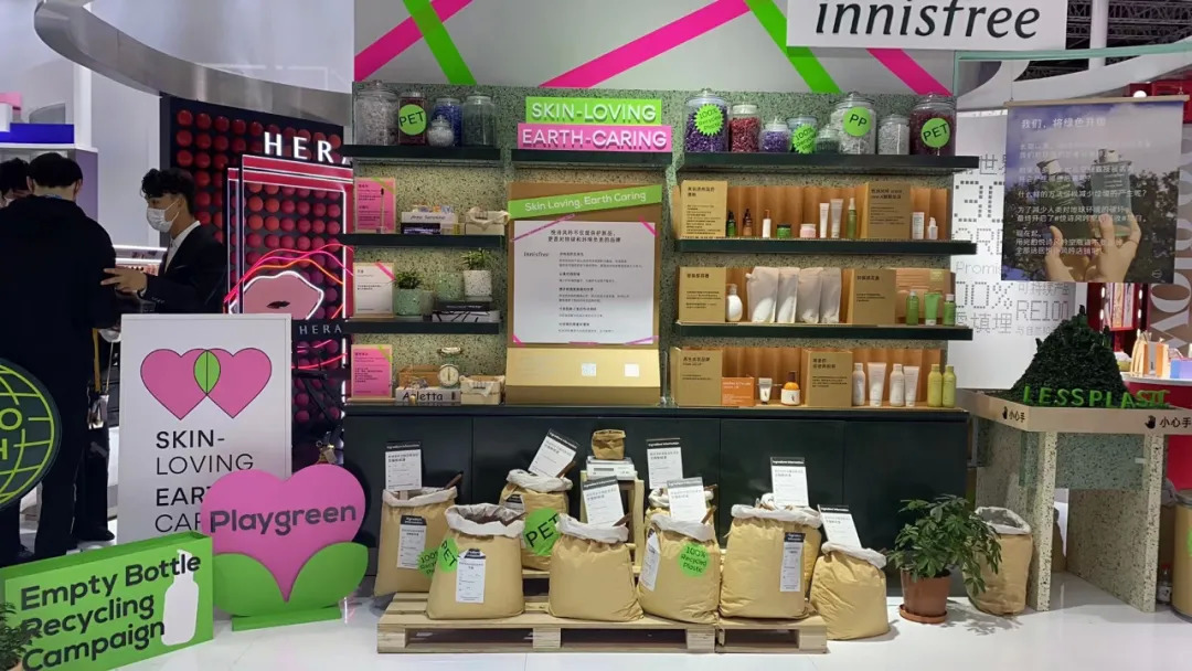 受到可持续发展理念的影响,资生堂展出了以茵芙莎、怡丽丝尔和BAUM为代表的绿色产品;爱茉莉太平洋旗下“悦诗风吟”品牌也将“限塑型动局”环保快闪店搬入进博展台,倡导空瓶回收、践行可持续生活方式。
