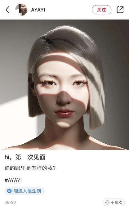 从已有案例来看,国外的虚拟KOL Lil Miquela在 Instagram 上拥有300万粉丝。今年9月,国内首个超写实数字人 AYAYI 宣布入职阿里,成为天猫超级品牌日的数字主理人,牵手摩登天空虚拟音乐艺人厂牌 No Problem,其小红书入驻笔记点赞破10万+。