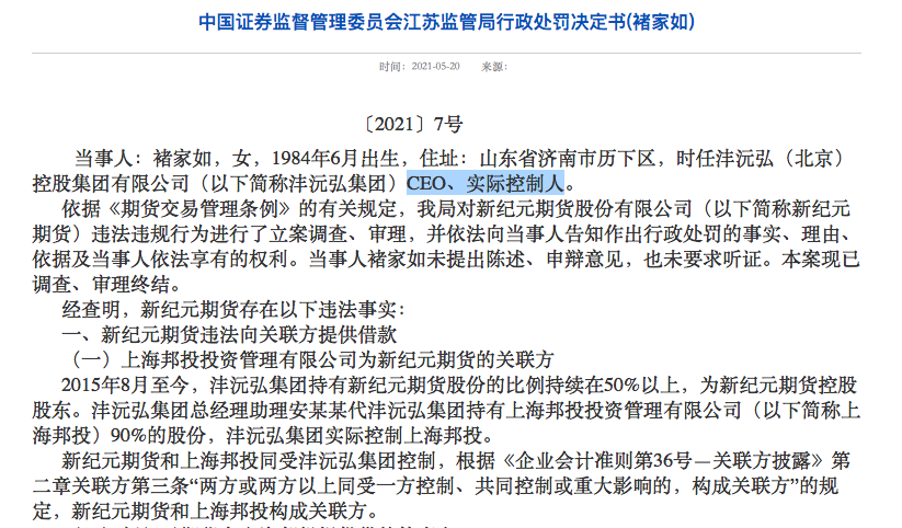 2021年1月,江苏证监局发布的一则行政监管措施决定书,新纪元期货因相关违规被处以暂停三项业务的重罚。
