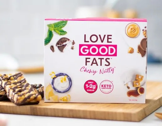 Love Good Fats的每一款“美味无比”的产品都以优质脂肪、低净碳水化合物和低糖为特色。目前的产品线包括原始黑巧克力涂层和植物性松露棒、白巧克力松露棒、耐嚼坚果棒以及浓稠的奶油奶昔. 他们的酮类产品含有4-5克净碳水化合物。声称只有 1-2 克糖和来自坚果黄油和椰子油的有益脂肪的混合物,这些产品不含麸质、不含大豆、非转基因、不含人工防腐剂或糖醇。