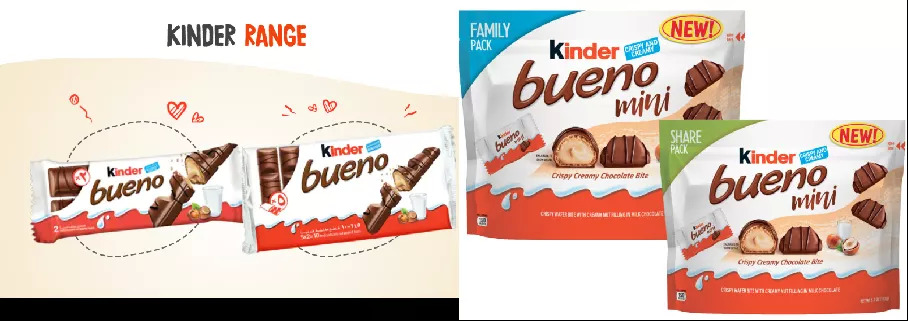 Kinder公司于2019年11月在美国市场推出Kinder Bueno,并在上市后迅速霸占美国市场,其销量跻身前十。Kinder Bueno由牛奶巧克力裹住酥脆的威化,并在威化中加入美味的榛子奶馅。在饥饿时为消费者提供能量的补充。该产品有两种包装单独包装以及家庭装满足各种出行需求。