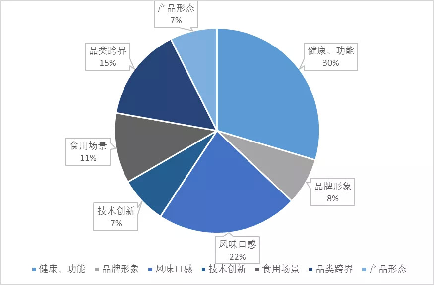 从今年发布的北美地区突破性创新产品榜单中可以看出,低糖高蛋白等健康趋势越来越成为品牌在餐饮、零食领域的关注焦点。同时饮料品牌们开始试图在场景和人群进一步破圈。除了用技术塑造新品类或是产品形态与功能、消费场景等产品层面的创新,品牌的战略变动与形象塑造也对品牌本身的发展产生了深远的影响。在23款上榜产品中,可以看出品牌的创新点主要集中在健康与功能、风味与口感等因素。