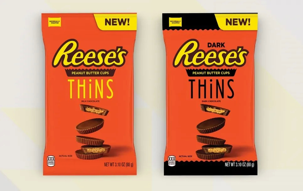 为了吸引更多的甜食消费者,Reese’s推出了比原版产品更薄的Reese’s THiNS,该产品与传统产品相比平衡了花生酱与巧克力酱的比例,使口味更加浓厚醇香。但与传统产品相比薄了约40%,且产品独立包装适合随身携带,与朋友进行分享。产品包含花生,大豆,牛奶等过敏原,仅含2%或更少的可可脂、盐、淀粉等成分,让消费者健康的享用甜食。