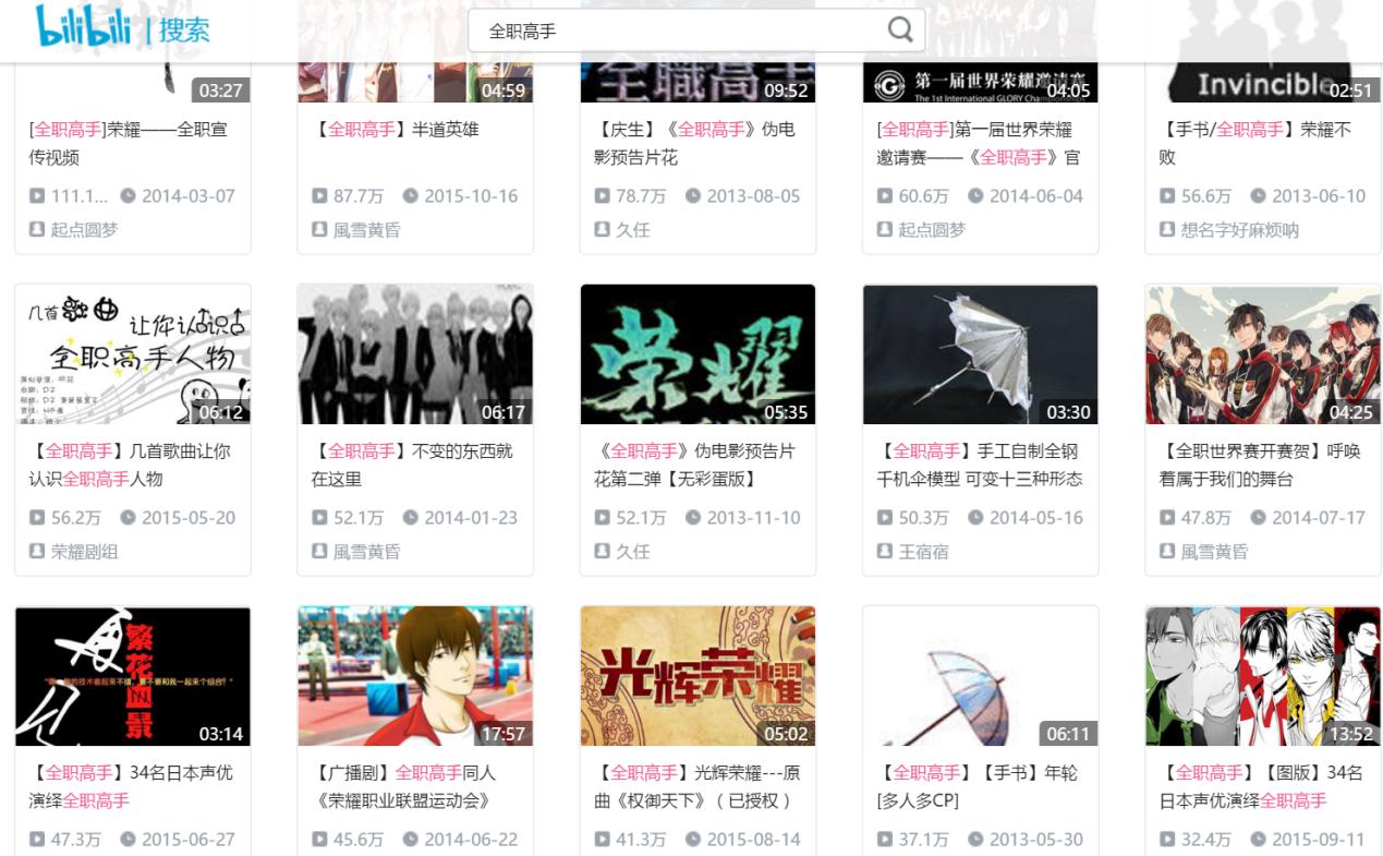 (图为《全职高手》B站同人视频按热门顺序)