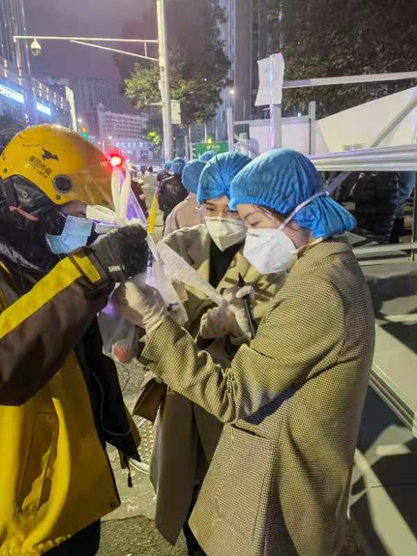 在成都市金牛区银海中心广场检测点收到了成都银行李家沱支行送来的爱心热饮。“抗疫人员辛苦了!成都银行李家沱支行为你们加油!”饮料上写着的加油字样,看得人心里暖暖的。
