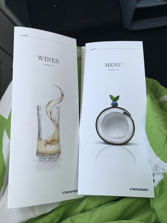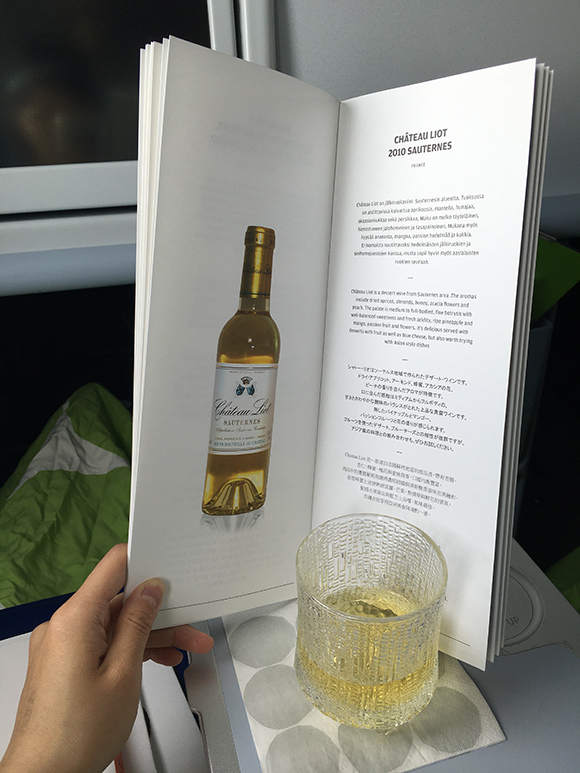 一上飞机,先贴心地发放2份menu,一份餐单、一份酒单。嗜酒如命的我在往返航班上把所有的酒精类体验了个遍,从女士喜爱的苏玳甜白、到法国隆河丘产区特级村镇出产的散发浓郁胡椒味道的红葡萄酒,从专为芬兰航空设计的鸡尾酒Blue Sky到入口清爽、微酸不腻的雷司令……在舌头触碰到酒体的瞬间就能感受到选酒人的用心。讲真,不管你对酒有哪种偏好,都可以找到适合自己的那一款。