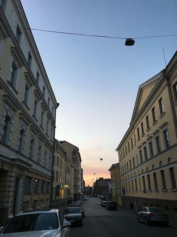赫尔辛基非常干净,几乎没有什么高层建筑。到了晚上,在魔幻时刻的晚霞之下,整个城市就像是影棚中的布景一般精巧、秀气,呈现出整洁有序的海港小城之美。