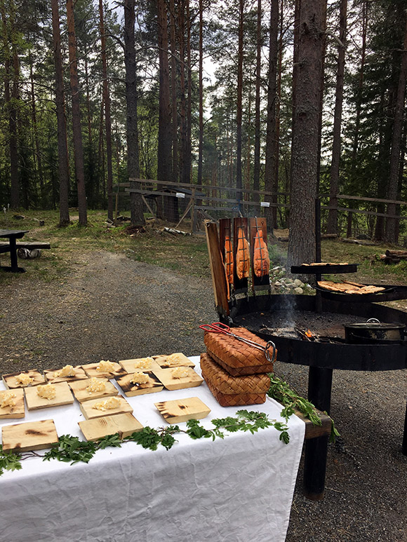 除了无忧的心态,芬兰的另一个奢侈之处是纯净的自然。这里从空气、水到农副、渔产品都拥有着本该拥有的欢畅、新鲜的味道。我们坐在当地的森林小屋中野餐,厨师花上几个小时在火上熏烤的三文鱼,已经沁入了木香;揉入了北欧质朴农家口味的面包,也在味蕾上将麦的味道绽放无余。