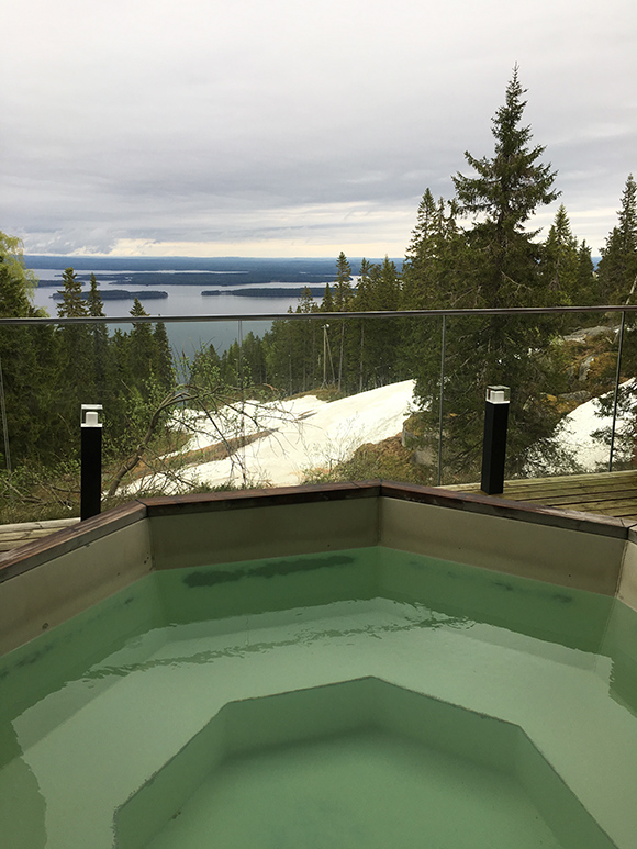 正宗的芬兰桑拿浴,是要在蒸过桑拿之后,直接面带红晕地跳进冰水里,当地人认为这样可以促进血液循环、增强体质。如果还是不能鼓起勇气尝试,那至少不要错过在户外泡一个热水澡。坐在温暖的热水池中,望着山上还没有完全融化的积雪,突然觉得自己变成了日本那只在大雪天泡温泉时一脸享受的猴子,原来幸福是这么简单的一件事。
