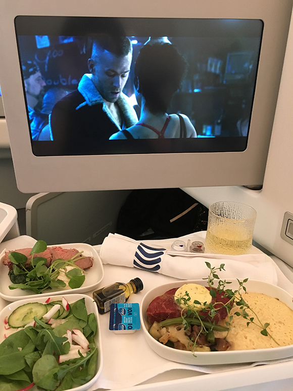 因为之前在候机室吃了太多,所以回程时的飞机餐没能好好品味,非常可惜。不过让我高兴的是,回程飞机上我在吃着和躺着两种状态中看完了国内未引进的《死侍》,一个新体验:芬航的机上影音娱乐资源确实丰富。