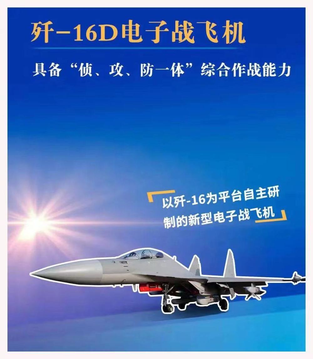 今年的中国航展上,具有侦攻防一体的综合作战能力的歼-16D电子战飞机首次亮相,体现了空军空中信息攻防体系建设所取得的成就,标志着空军在夺取空中战场制信息权、破击对手空防体系方面拥有了有效的手段和能力。