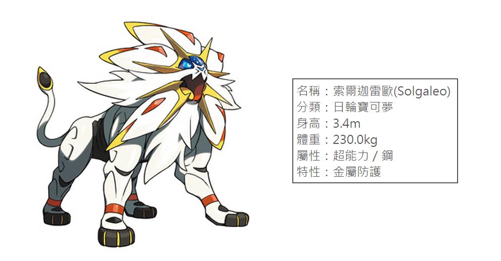 索尔迦雷欧被称为“太阳之使者”,自远古时代起,作为太阳之使者备受崇拜,古人以敬畏的心称之为“吞噬太阳之兽”。有着太阳般的鬃毛,其体内蕴藏着莫大的能量,会一边释放光芒,一边行动。