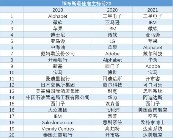 福布斯世界最佳雇主榜每年发布一次,今年是第5期。受外部环境影响,榜单每年都会发生不小的变动。