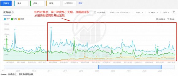 结果出人意料,新品牌“中国李宁”准确押中“国潮风”,在时装周上一炮而红。大秀落幕当天,“李宁”的百度搜索指数暴涨。