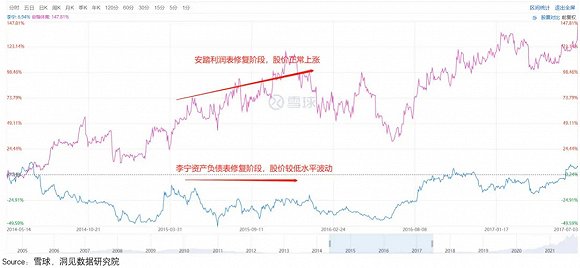也就是说该阶段,李宁刚刚解决了存货问题,完成对资产负债表的修复,而安踏直接跨越完成了利润表修复。